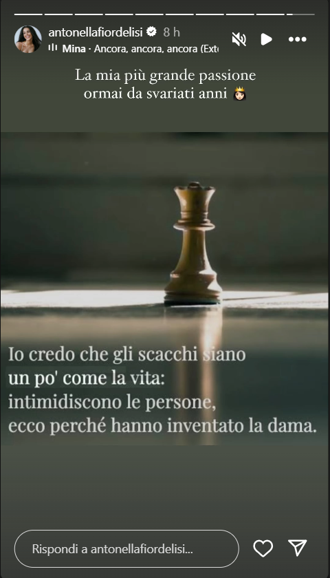ANTONELLA FIORDELISI, IL PARAGONE DELL’INFLUENCER: GLI SCACCHI COME LA VITA- In queste ore, l’ex partecipante della settima edizione vip del reality show di Canale 5 condotto da Alfonso Signorini, ha rilasciato delle importanti dichiarazioni sul suo profilo Instagram ufficiale, svelando come per lei gli scacchi siano una passione di vita. Scopriamo insieme che cos’ha asserito nel dettaglio l’ex vip salernitana d’origine.
