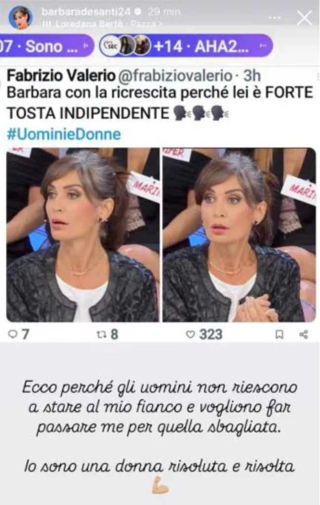 Ecco riportate, di seguito, le dichiarazioni di Barbara De Santi sul suo canale Instagram ufficiale: “Ecco perché gli uomini non riescono a stare al mio fianco e vogliono far passare me per quella sbagliata. Io sono una donna risoluta e risolta”.