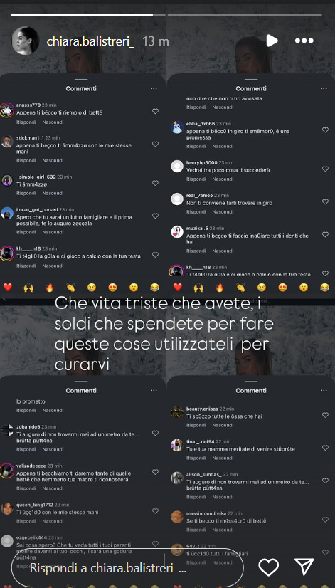 CHIARA BALISTRERI MINACCIATA DI MORTE ONLINE: LA REAZIONE DELL’EX NAUFRAGA DELL‘ISOLA DEI FAMOSI 19- Poco fa, l’ex amata quanto discussa concorrente dell’Isola 19, ha pubblicato degli screen, contenenti i commenti beceri da parte degli utenti del web, che la minacciano di morte. Scopriamo insieme cos’altro ha detto la giovane ex naufraga, Balistreri.