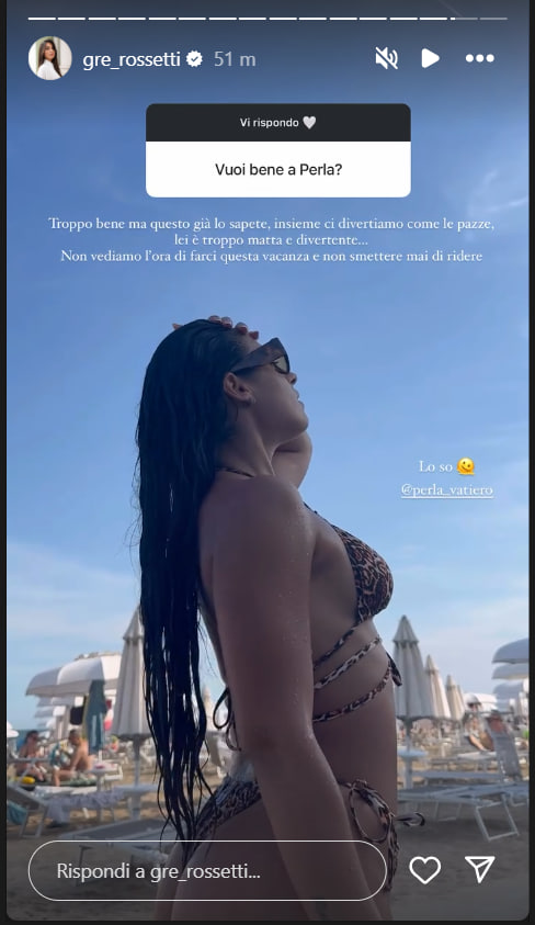 Ecco riportate, di seguito, le dichiarazioni di Greta: “Se voglio bene a Perla? Troppo bene, ma questo lo sapete già!”.