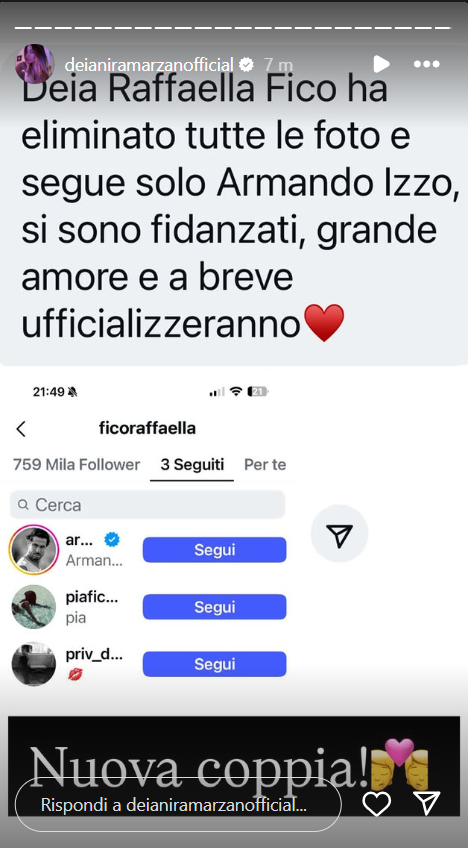 Gossip, Raffaella Fico ha una nuova fiamma: l’indiscrezione riportata da Deianira Marzano sul suo profilo Instagram ufficiale (foto)