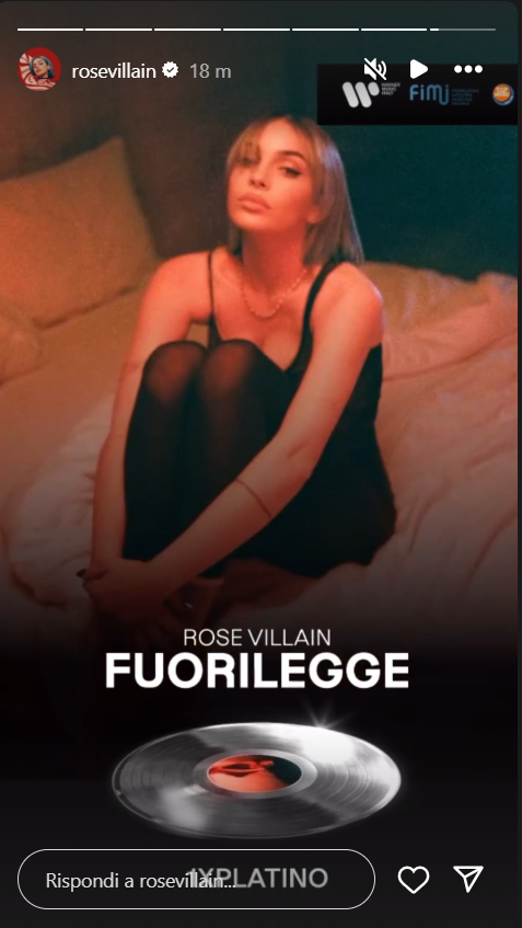 Rose, sul suo profilo Instagram ufficiale, ha pubblicato la certificazione FIMI appena ricevuta.